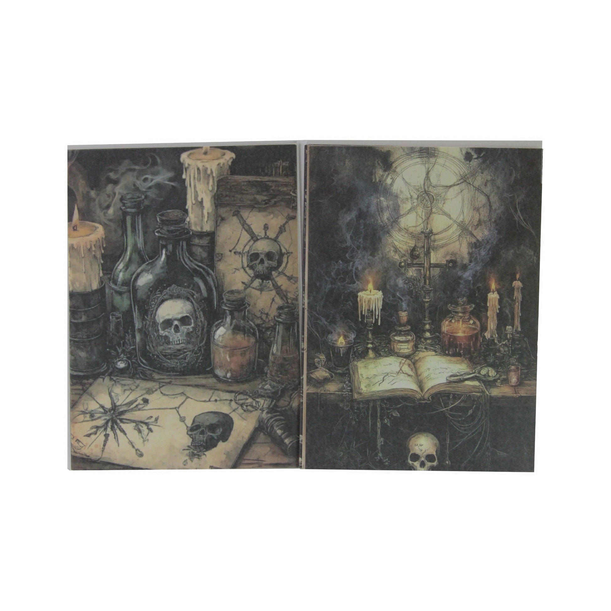 Transform your journal into a darkly delightful masterpiece with this macabre ornamental paper collection. Featuring poison bottles, bubbling cauldrons, and mystical potion imagery, these beautifully printed sheets are perfect for mixed media projects, scrapbooking, and creative junk journaling.